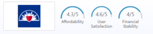 Farmers takes the top spot for customer satisfaction but drops slightly regarding affordability. Those looking for unique features won’t find a Farmers policy very appealing, as it only offers the core renters insurance coverages most insurers provide. Of the group featured here, Farmers ranks last for financial strength from AM Best.